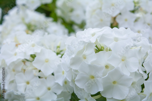 Fototapeta premium White angel phlox flowers. Blooming garden phlox, perennial or summer phlox