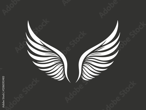 © vadymstock, Obraz premium White angel wings on a black background, symbolizing freedom and grace.