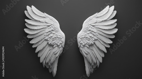 © @adha, Obraz premium White Angel Wings on Dark Background