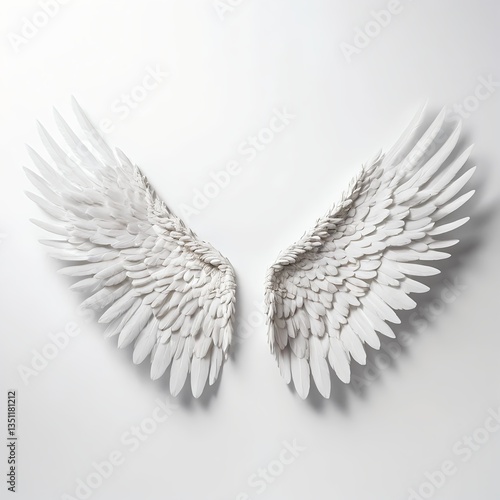 © Teeranan, Obraz premium White Angel Wings on White Background