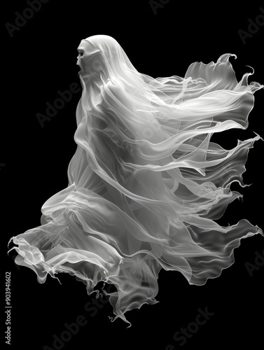 © Lubos Chlubny, Fototapeta premium White antique ghost is flying on black background