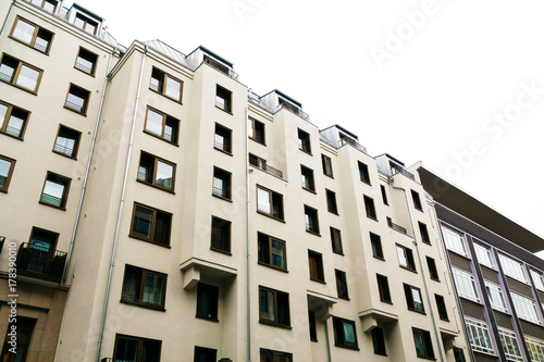© Novanture, Fototapeta premium white apartment complex with square formed facade