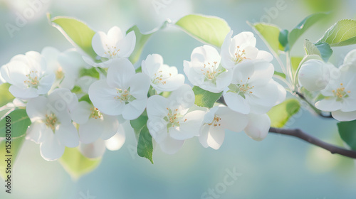 Obraz premium White Apple Blossoms on Tree Branch