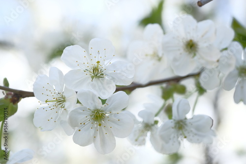 © Soyka, Fototapeta premium White apple flowers are plentiful on the branch.