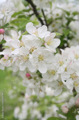 © saratm, Fototapeta premium White apple flowers on branch in springtime. Malus domestica in the orchard