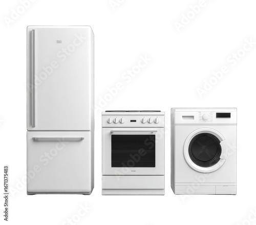 © 1nautika, Fototapeta premium White appliances fridge, stove, and washer