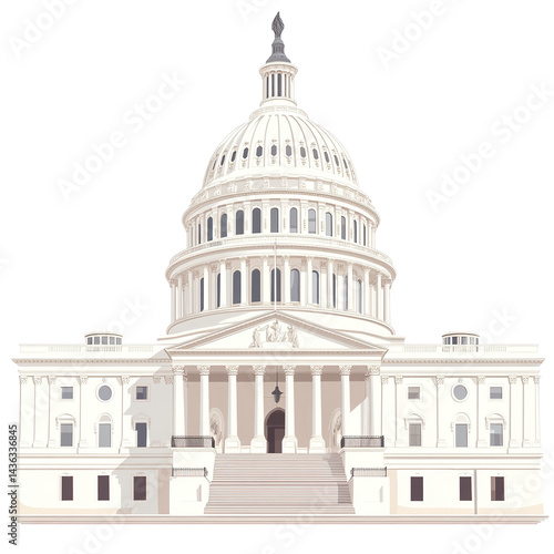 © Adi, Fototapeta premium White architectural marvel: a detailed rendering of a capitol building design