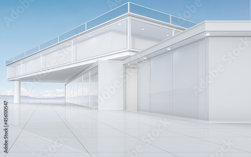 Obraz premium White architecture with outdoor view, 3d rendering.