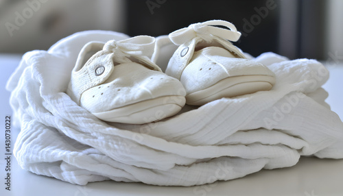 © ALBI, Obraz premium White Baby Shoes and Blanket