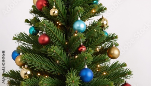 © Pixel Matrix, Fototapeta premium White-backed Christmas tree lit up for festive celebration
