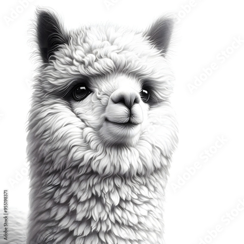 Obraz premium 흰 배경, 알파카, 펜슬 드로잉 (White background, alpaca, pencil drawing)