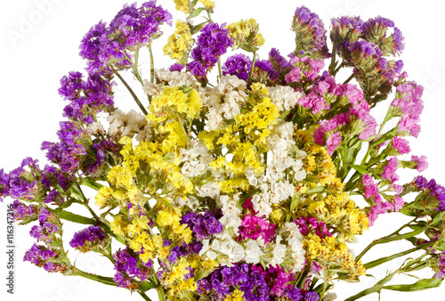 © Vadim Hnidash, Fototapeta premium white background bouquet of colorful wildflowers