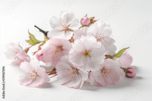 Fototapeta premium White background, copyspace, watercolor, Cherry Blossom Spring. AI generative