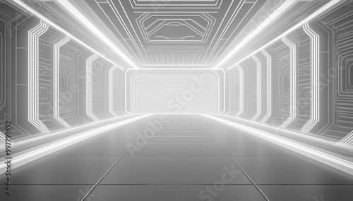 Fototapeta premium White background 3D room light abstract space technology tunnel stage floor