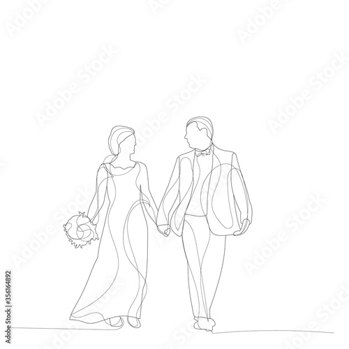 © Dzmitry, Fototapeta premium white background, line drawing of the bride and groom, wedding