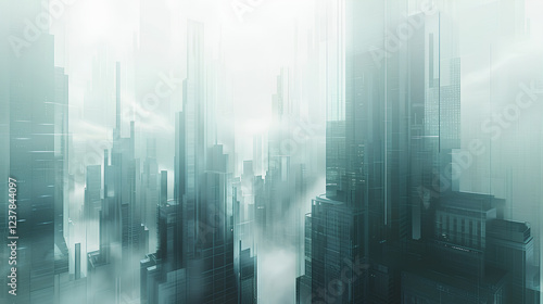 © Aleena, Obraz premium White background, tall buildings, light gray and blue styles, a sense of transparent technology