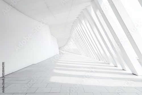 © Sakai, Obraz premium White background with angular black grid patterns, strong structural elements creating depth and motion.