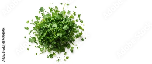 © TheWaterMeloonProjec, Obraz premium White background with chopped cilantro