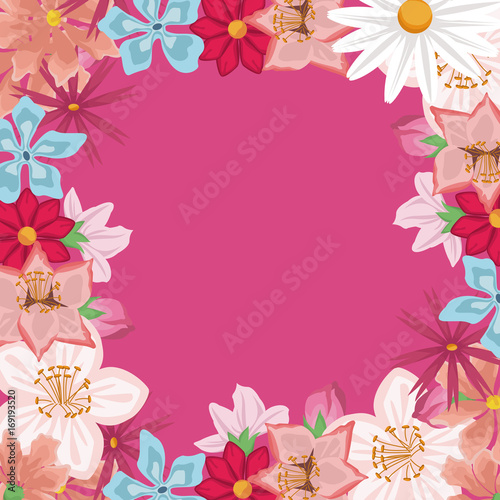 © Jemastock, Fototapeta premium white background with decorative border with colorful flowers vector illustration