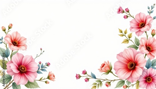 Fototapeta premium White background with delicate watercolor floral clipart.