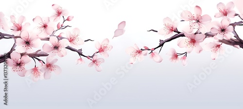 © Nanda, Fototapeta premium White background with drawings of colorful Cherry blossoms for children, ai generative