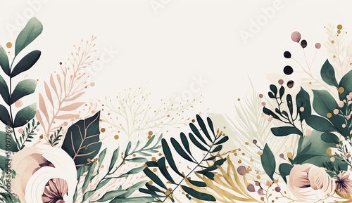 © Lalaland, Naklejka premium White Background with Floral Decoration, floral, decoration. Generative AI