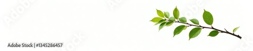 Fototapeta premium White background with isolated branch with brown trunk and green leaves,...