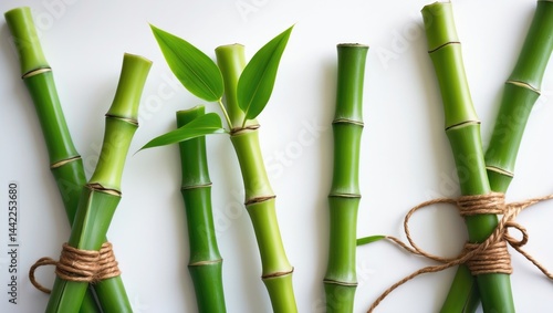 © Giovanni, Fototapeta premium White background with isolated pieces of decorative plants and green leaves