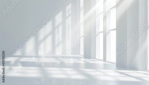 Fototapeta premium white background with light shades and invisible lines lights and shadow play on white wall of empty room