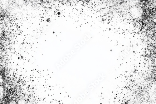 Fototapeta premium White background with scattered black dust and particles forming a frame.
