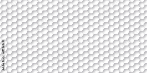 Fototapeta premium White Background with white hexagons. White texture honeycomb background. Abstract background with lines. Surface polygon pattern with glowing hexagon paper texture and futuristic business.