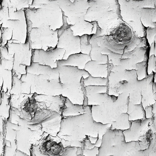 © Textures & Patterns, Obraz premium White bark with peeling paint creates a textured and patterned abstract surface.