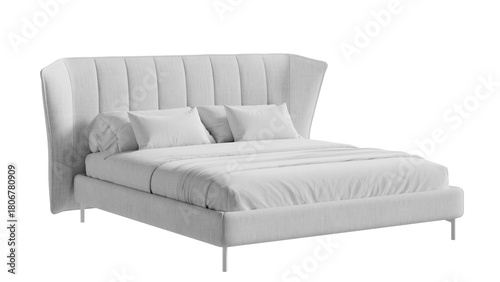 © AndrewD, Fototapeta premium White bed with a white blanket and pillows on a transparent background.