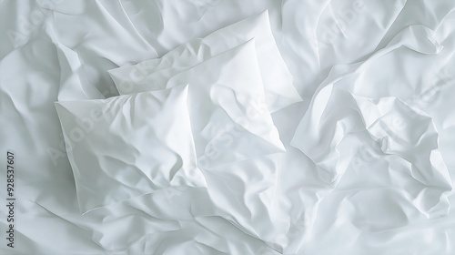 © Natali, Obraz premium White bedding sheets and pillow background, Messy bed concept created with generative ai technology
