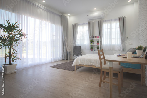 Fototapeta premium White bedroom interior.