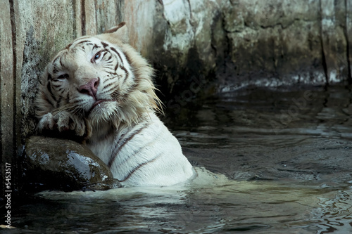 © beltsazar, Obraz premium white bengal tiger scratching his back