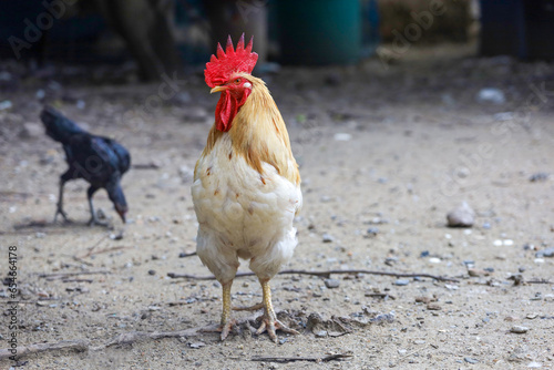 © pumppump, Fototapeta premium White Betong Chickken in dry garden