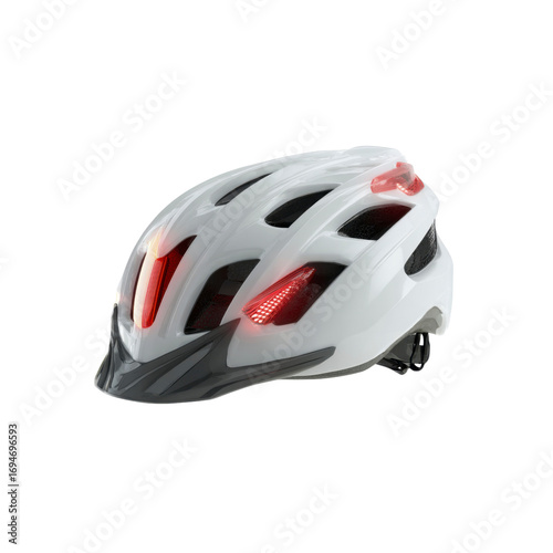 © Kaelguha, Fototapeta premium White Bicycle Helmet with Integrated LED Safety Lights - Studio Shot