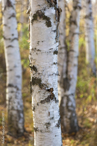 © ads861, Fototapeta premium White birch trunks September day close-up nature