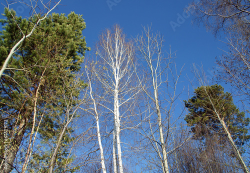 Obraz premium .White birches in the blue sky