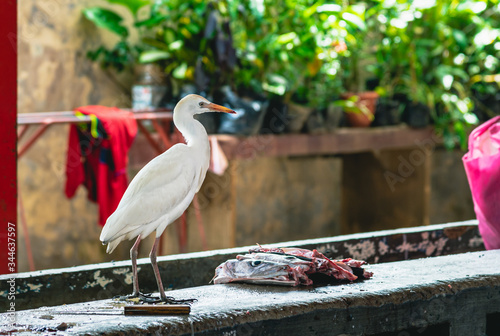 © 22Imagesstudio, Obraz premium White bird at the street fish market, Seychelles.