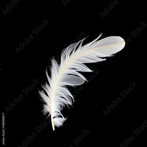 © SAGMA DESIGNS , Obraz premium White Bird Feather on Black Background – Minimalist High-Contrast Nature Art