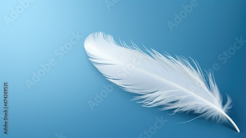 Obraz premium white bird feather on blue background