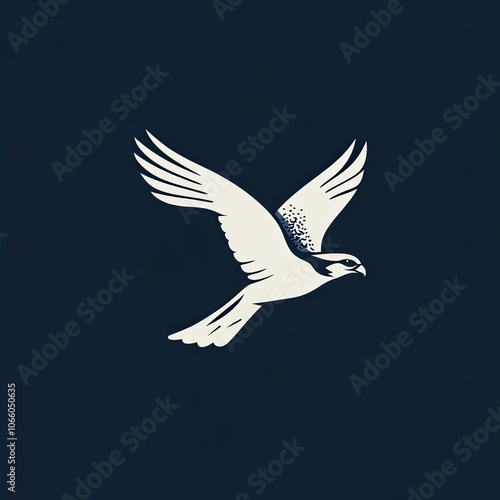© Ariestia, Fototapeta premium White Bird in Flight Against a Dark Blue Background