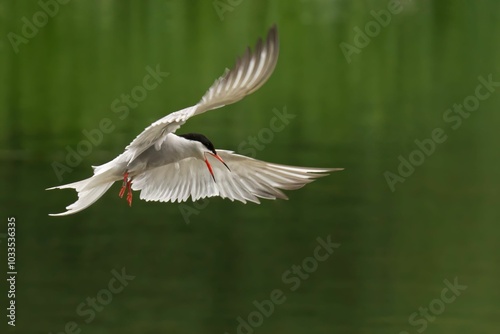 © Wirestock, Obraz premium White bird in flight with green background