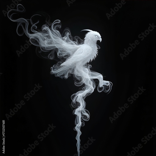 © YURY, Fototapeta premium White bird made of smoke rising against a dark background