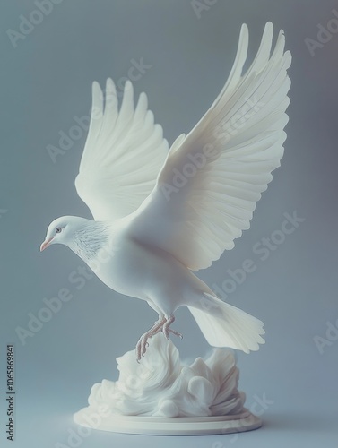© Alexandr, Obraz premium White Bird Statue With Spread Wings