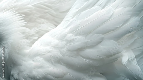 Fototapeta premium White bird wings, close-up, soft light, textured feathers, nature background,...