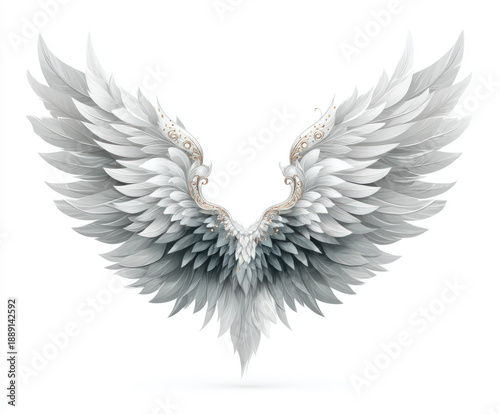 © sharafmaksumov, Fototapeta premium White bird wings isolated on white