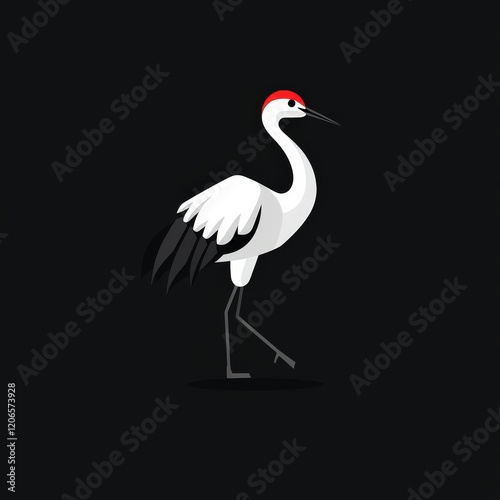 © WIrul, Obraz premium White bird with red head and long legs standing on a grassy surface near water